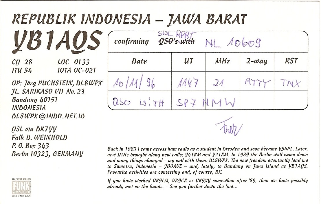 YB1 - Republic Indonesia - 21 MHz - 15m - RTTY