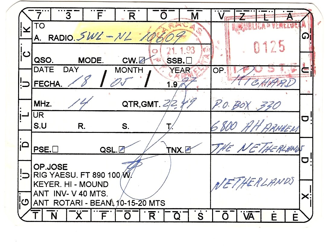 YV5 - Venezuela - 14 MHz - 20m - CW