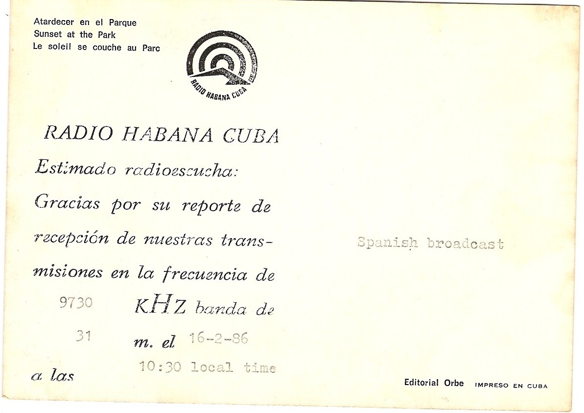 Radio Havana Cuba 16 Februari 1986 / February 16, 1986